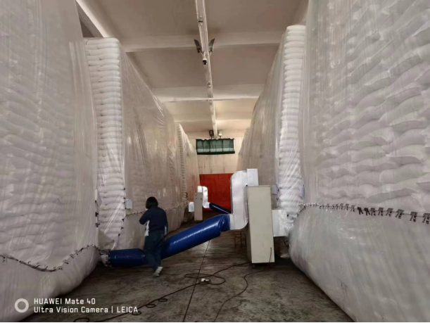 為提升養(yǎng)護(hù)質(zhì)量,欽州公司組織骨干力量改進(jìn)食糖倉庫除濕工藝,在總結(jié)歷年來食糖養(yǎng)護(hù)經(jīng)驗(yàn)的基礎(chǔ)上,創(chuàng)新采取密封式、跺對(duì)跺環(huán)流除濕工藝。2022年食糖養(yǎng)護(hù)用電量明顯減少,食糖養(yǎng)護(hù)質(zhì)量較往年有進(jìn)一步的提高,得到了廣大客戶的廣泛好評(píng)。